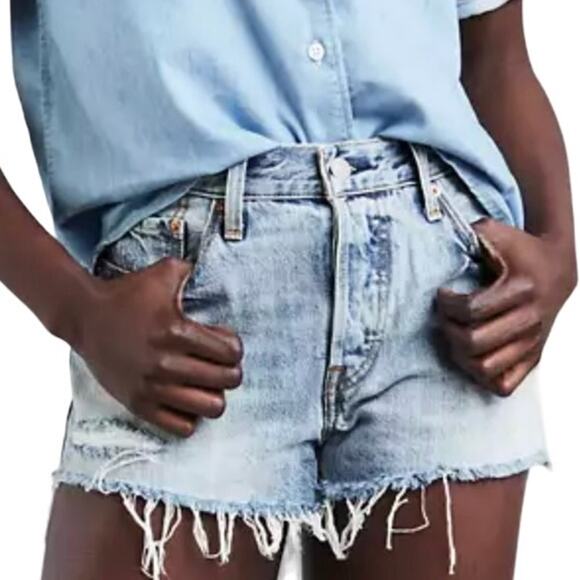 Levi's 501 Jean Shorts Cut Off Light Wash Distressed Mid Rise Button Blue 31"