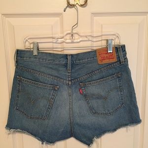 Levi's 501 Jean Shorts. Denim is a light/ mid wash and in great condition! Bought these shorts from another posher and I love them but unfortunately they are too big. Please submit an offer!