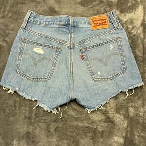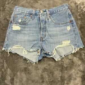 Levi's 501 Jean Shorts Womens Sz.26 Blue Daisy Duke Button Fly Distressed Denim