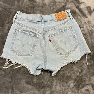 Levi's 501 Jean Shorts Womens Sz.27 Blue Daisy Duke Button Fly Distressed Denim