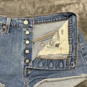 Levi's 501 Jean Shorts Womens Sz.29 Blue Daisy Duke Button Fly Distressed Denim