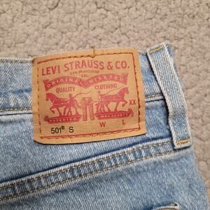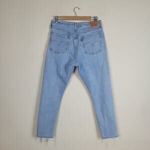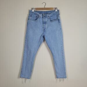 Levis 501 Jeans 31x28 Blue Denim Light Wash Button Fly Raw Hem Skinny High Rise