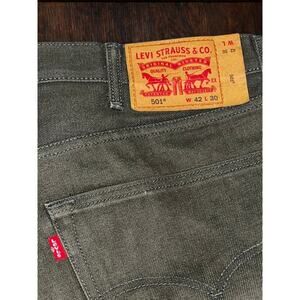 LEVI’S 501 JEANS 42X30 MEN WHITE OAK CONE DENIM SELVEDGE RARE These rare Levi’s 501 jeans are made with legendary White Oak Cone Denim, one of the most sought-after and discontinued U.S. selvedge fabrics. Featuring the iconic button fly, classic 5-pocket styling, and a durable heavyweight feel, this pair comes in a unique olive/charcoal tone that sets it apart from standard indigo offerings. Tagged 42x30, made in Mexico, and built from one of the final runs of Cone Mills production, these jeans are a must-have for any Levi’s collector looking for a pair with true heritage construction and long-term durability. ITEM DETAILS * Brand: Levi’s * Model: 501 Original Fit * Style: Button-Fly Jeans * Material: White Oak Cone Denim (Selvedge) * Color: Olive / Charcoal * Fit: Original Straight Leg * Size: 42x30 * Made in: Mexico * Features: * Iconic Red Tab * Cone Denim interior label * Selvedge detailing * Button fly * Heritage construction CONDITION Pre-owned with some light marks and normal wear — no holes, strong stitching, and plenty of life left. See photos for details. TREASURE HUNTERS NOTE A rare find — Cone Mills White Oak denim is no longer produced, and pieces like this only get harder to come by. Perfect for collectors, Levi’s enthusiasts, or anyone who appreciates true American denim history.