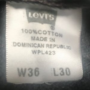 Levi's 501 Jeans. Faded Black. Vintage. Made in Dominican Republic. Slightly frayed at bottom hem as pictured.
