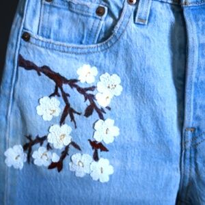 Levi’s 501 Jeans Flared Conversion– Cherry Blossoms, Cropped