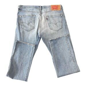 Levis 501 Jeans Men 36x34 Blue Denim Pants Button Fly Classic Lt Wash Straight