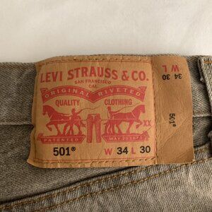 Levis 501 Jeans Mens 32x27 Gray Button Fly Straight Leg Denim Pants Classic