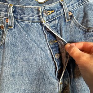 Levis 501 Jeans Mens 32x31 Straight Medium Wash Cotton Distressed Frayed