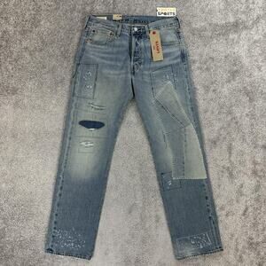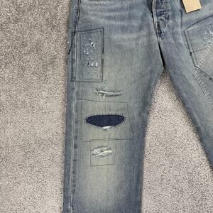 Levis 501 Jeans Mens 32x32 Blue Distressed Patchwork Selvedge Irregular Denim