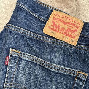 Levis 501 Jeans Mens 33x36 (33x35) Distressed Blue Denim Button Fly Straight Leg
