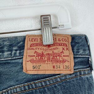 Levis 501 Jeans Mens 34x36 (32x32) Blue Original Fit Straight Leg Button Fly