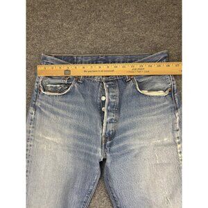 Levis 501 Jeans Mens 35x34 Blue Button Fly Straight Leg Distressed Faded Denim