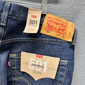Levi's 501 Jeans Mens 36x32 (37x32 ACTUAL) Original Button Fly Blue Raw Wash Denim NEW