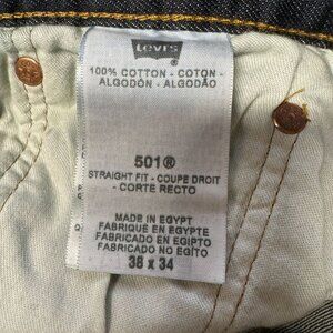 Levis 501 Jeans Mens 38 x 34 Blue Dark Wash Straight Leg Button Fly Denim
