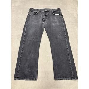 Levis 501 Jeans Mens 38x29 Black Faded Denim Straight Leg Button Fly Red Tab