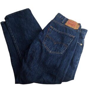 Condition: Gently worn, no visible flaws. Denim fabric shows only light, normal wear with no stains, holes, or damage. All buttons and rivets intact. Classic 501 shrink-to-fit, broken in but retains dark indigo tone.