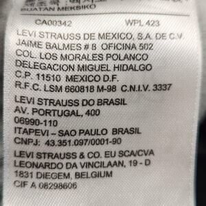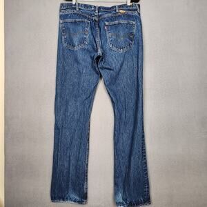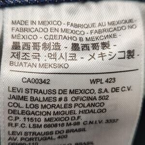Details: Five-pocket design, button fly closure, belt loops, copper-tone rivets, Levi's red tab on back pocket, leather back waist patch that is heavily worn, straight leg classic fit.