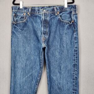 Levis 501 Jeans Mens 38x36 Blue Medium Wash Denim Straight Leg Button Fly