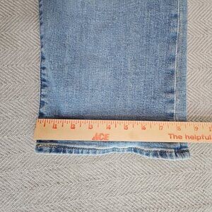 The men's size 42 waist with a 30-inch inseam ensures a versatile fit for various body types. Embracing the enduring style of straight-leg jeans, these are a wardrobe staple that pairs effortlessly with any casual ensemble.  The jeans feature a medium fabric wash and a faded grunge-inspired look that adds an edgy touch to the overall design.