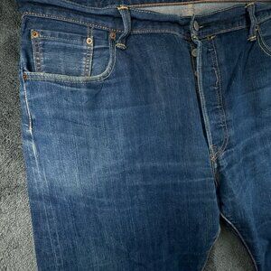 Levis 501 Jeans Mens 42x34 Blue Denim Button Fly Straight Leg Red Tab Adult