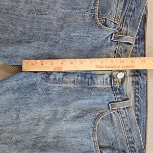 Designed with practicality in mind, these jeans boast a mid-rise waist, secure button closure, and a convenient 5-pocket design. Perfect for any season, the versatile blue hue seamlessly transitions from spring to winter. Proudly made in the United States, these size 35 jeans with a 30-inch inseam are a staple for any wardrobe, combining functionality with the laid-back cool of the Levi's 501 series.