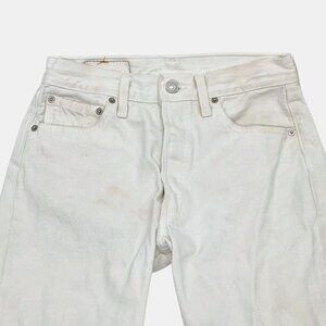 Levis 501 Jeans Mens White Straight Leg Denim Button Fly Distressed Stains 29x32