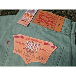 Levi's 501 Jeans Regular Straight Fit Mint Teal 34x30 Button Fly Raw Denim