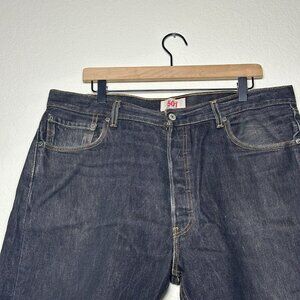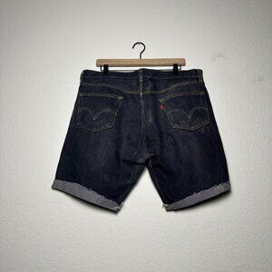 Levis 501 Jeans Shorts Womens 18 Black Denim Cuffed Hem Beach Faded Button Fly