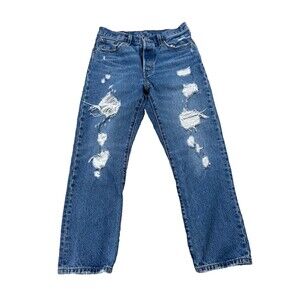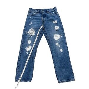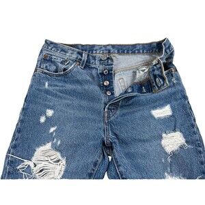 Levi's 501 Jeans Women 28x26 Blue Button-Up Fly Distressed Blank Red Tag