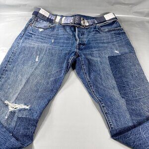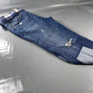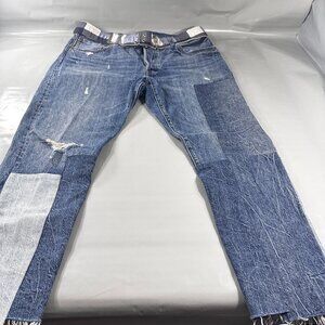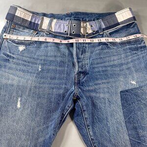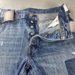 Levis 501 Ragged Lands Jeans Patchwork Cut Off Denim Color Block Raw Hem