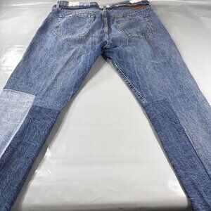 Levis 501 Jeans Women Patchwork Denim Ragged Lands Color Block Raw Hem Straight