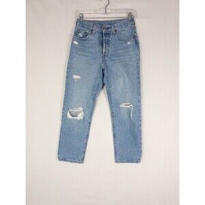 Levis 501 Jeans Womens 25x26 Light Wash Distressed High Rise Red Tab Straight