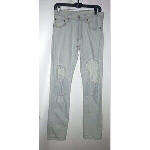 Levi's 501 Jeans Womens 26x32 Light Blue White Button Fly Distressed Patch knee
