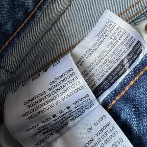 The product is a pair of Levi's 501 Women's Jeans in a white oak cone denim selvedge with a distressed button fly. These slim-fit jeans feature a solid blue color made from 100% cotton denim material. They have a mid-rise waist of 28 inches and an inseam of 26 inches, making them a comfortable and stylish choice for women looking for a hipster or retro-inspired look. Additionally, the jeans have a button and logo accents, along with convenient pockets for added functionality.