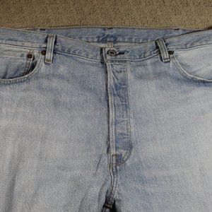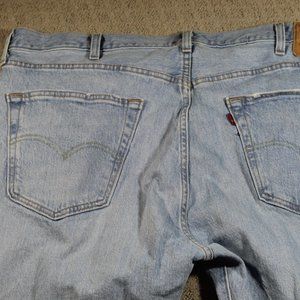 501 original fit button fly jeans. These are in excellent condition with some minor distressing around pockets and hem and normal fading. Perfectly broken in and comfortable!