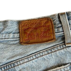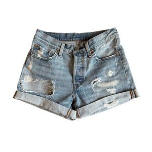 Levi's 501 Medium Wash Distressed Long Denim Shorts Blue Size 25 #1605