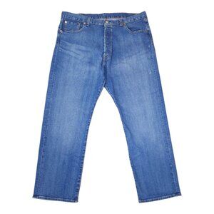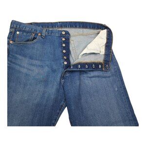 Levis 501 Mens Jeans W40 L30 Straight Fit Blue Denim Irregular Small Holes Front