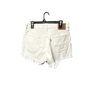 Levi’s 501 Mid-Rise White Distressed Denim Shorts.