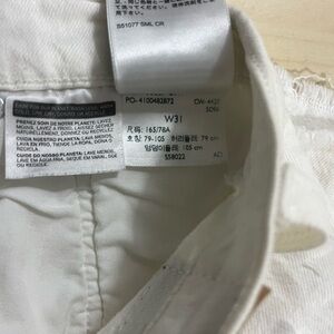 These shorts boast trendy lived-in details like whiskering and distressing throughout the study white denim composition. Shredded raw hems hit at the perfect flirty length. Belt loops, five pocket cut, top button, and hidden button fly add classic denim details. Red logo tag and leather patch at back.