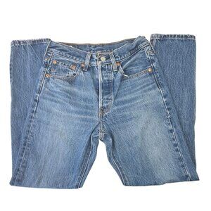 Levis 501 Original Button Fly Jeans Womens Sz 24x28 Medium Wash Cotton Denim