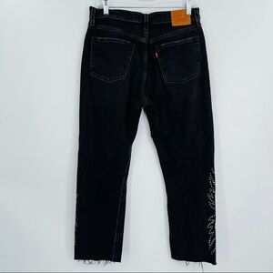 Levi's 501 Original Crop Jeans Womens 29 Black Studded Cut Off Hem Rigid Denim