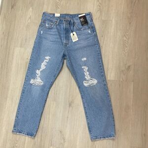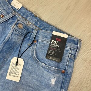 Levis 501 Original Cropped Jeans Womens 30x26 Medium Wash Distressed 362000215