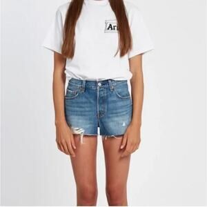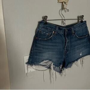 In good preowned condition. 100% cotton. Distressed with raw hems. High rise.