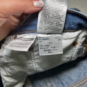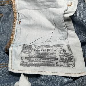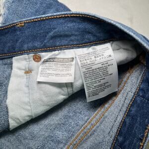 The product is a pair of Levi's 501 Original Fit High Rise Women's Shorts in size 32, featuring a distressed button fly closure. These denim shorts have a 5-pocket design and a classic fit, suitable for casual and travel occasions. The shorts are made of 100% cotton fabric, following a medium wash and a solid pattern with blue accents. With a high rise and a raw hem, they offer comfort and easy care, perfect for the summer, fall, and spring seasons. The design includes logo accents and embodies a festival, beach, American, and 90s theme.