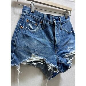 Levi's 501 Original Fit Jean Distressed Shorts 23 Cut Off Ripped Button Fly Festival Streetwear.