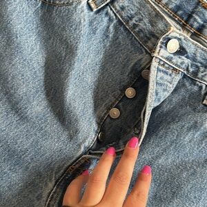 Classic Levi's 501 jeans. Light blue wash, button fly. 100% cotton, real denim (no stretch). Great unisex style, the perfect vintage Levi's look. Sadly, reposhing as they are just a little too tight for me but will be perfect jeans for any stylish collector!