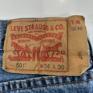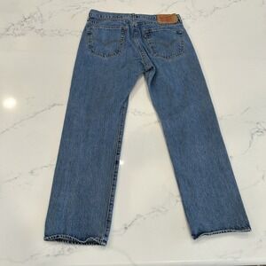 Levi's 501 Original Fit Jeans for Men, Size 34x30. Timeless blue denim with signature button fly, straight leg, and mid-rise fit. A staple in any wardrobe, perfect for everyday wear, casual styling, or vintage-inspired outfits. Pre-owned with light signs of wear and fading that add authentic character. No holes or stains.