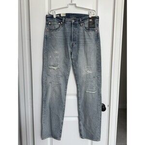 Levi's 501 Original Fit Men's Ripped Jeans Blue Button Fly 34X34 Straight NWT