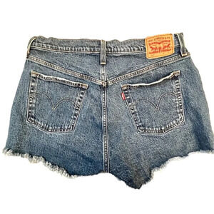 Excellent used condition Levi's Women's 501 Original High Rise Jean Shorts in salsa mood wash. No stains or flaws; factory distressing.