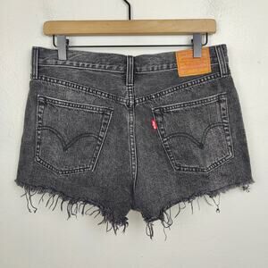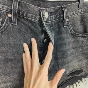 Levis 501 Original Shorts Womens 29 Trashed Black Distressed Cut Offs Button Fly